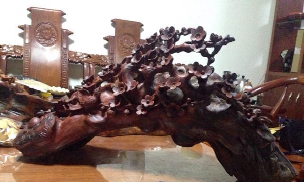 红酸枝手工雕花红木摆件-梅花如意