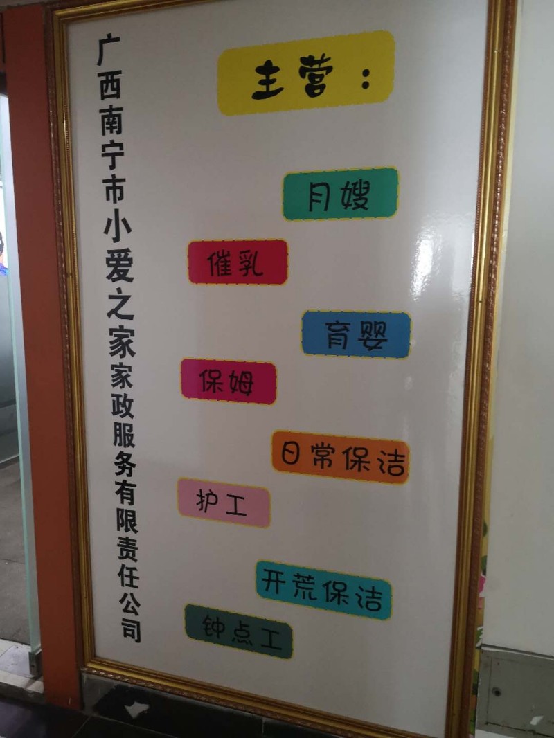 广西南宁市小爱之家家政服务有限责任公司;专业不满意不收费。专业阿姨、三证齐全、品质服务。所有阿姨经专业培训上岗,健康证、乙肝两对半齐全,服务人员岗前培训、技能考核、一对一顾问式服务、每年定期体检,我们的服务让您更放心!公司秉承以以品质为基础,专业为保障,服务至上,传承工匠精神,创享客户优美生活。